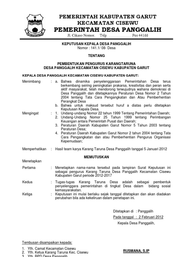 Contoh surat pembentukan karang taruna. Contoh sk karang taruna. Contoh Surat Karang Taruna. Pemerintah Desa dalam melengkapi administrasi tentang Pembentukan Karang Taruna Desa dengan membuatkan Surat Keputusan atau SK Karang Taruna Desa.