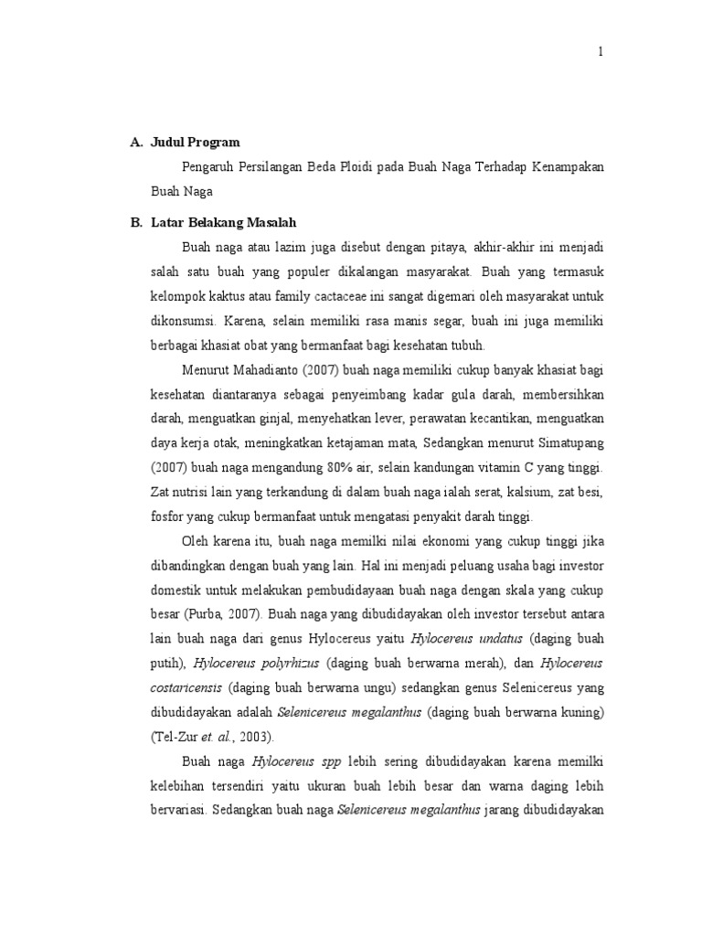Proposal buah naga. Penyusunan Proposal Skripsi ini merupakan salah satu syarat untuk menyelesaikan pendidikan Program Sarjana Strata-1 Program Studi. Buah naga atau dragon fruit adalah sejenis tanaman kaktus yang dikenal sebagai nightblooming catus. Net BC 1 yaitu Rp 161 dan nilai IRR 5168.