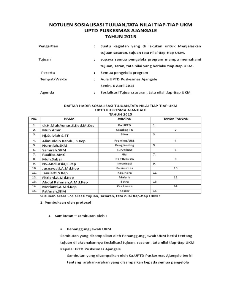 Notulen Sosialisai Tujuan Sasaran Tata Nilai Tiap Tiap Ukm