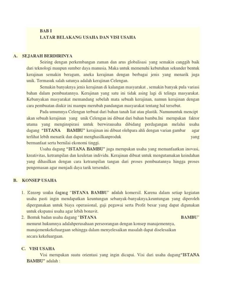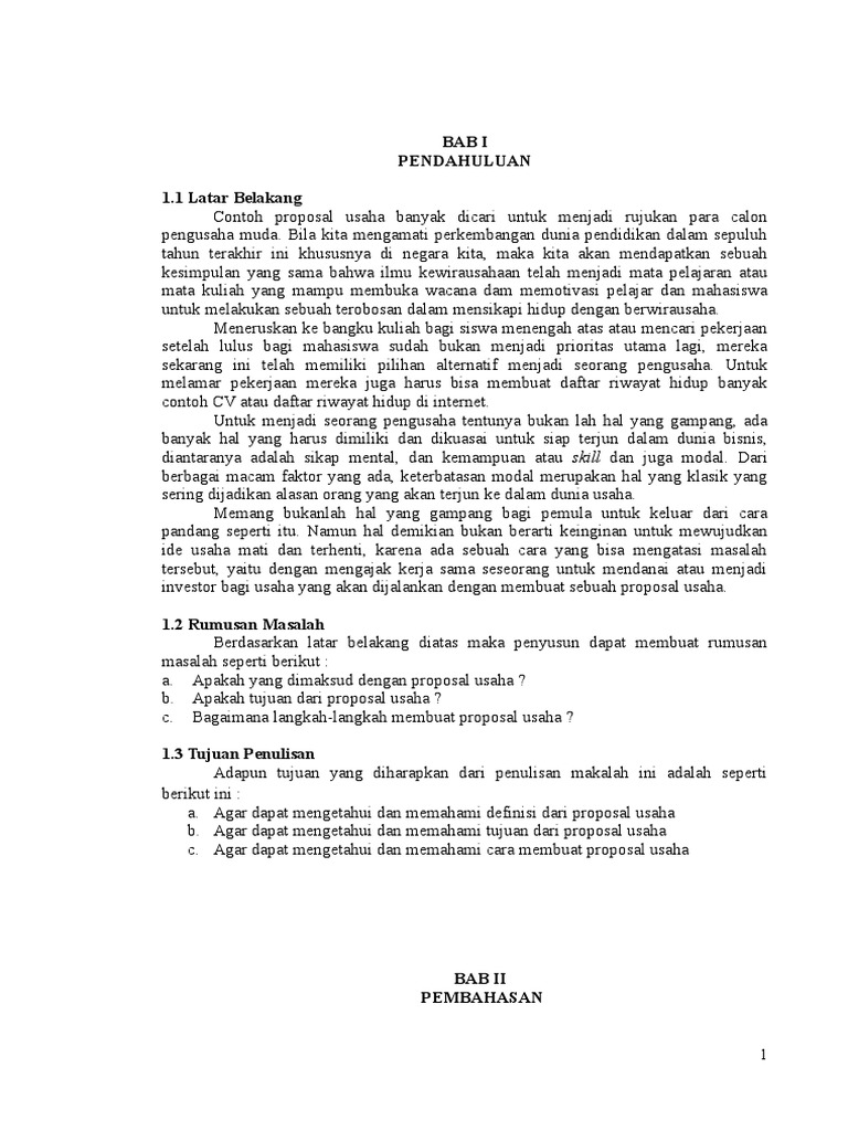Setiap orang pasti ingin menjadi bos di bisnis atau usahanya sendiri. Pada kesempatan ini saya akan menguraikan contoh proposal usaha kecil bisnis makanan file doc bisa di download dan juga cara membuat proposal usaha. Berdasarkan kecintaan pada batik Batik Erna Collection berupaya untuk mengangkat batik untuk menjadi bagian penting dalam dunia fashion saat.